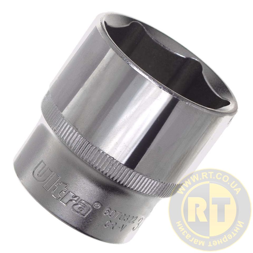 Насадка шестигранная короткая 1/2" 32мм CrV ULTRA (6070322) это сменная рабочая насадка сборного слесарно-монтажного инструмента для соединения или разъединения резьбовых соединений путем закручивания или раскручивания гаек, болтов и других изделий для крепления с соответствующим типом головки, которые имеют внешний шестилучевой рабочий профиль.