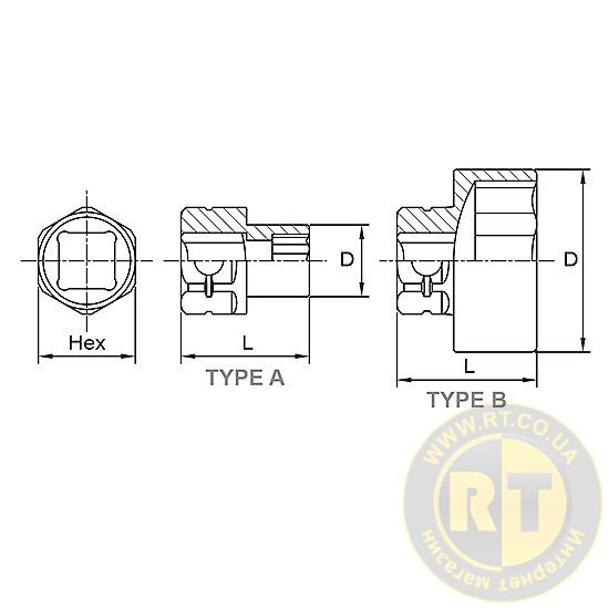 Головка имеет низкий профиль, позволяющий использовать ее в тех местах, где ограничен доступ к крепежным элементам. Хвостовик головки имеет 6 граней, что обеспечивает крепкое сцепление с гайками и болтами и позволяет передавать большие моменты затяжки. Обычно используется с импульсными гайковертами, генерирующими удары, обеспечивающими нужный момент затяжки.