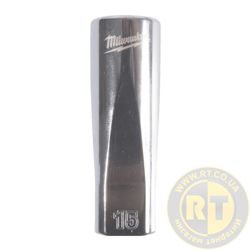 Головка торцевая хромированная ⅜″ MILWAUKEE, (звезда 12 гранн.) удлиненная, 15мм