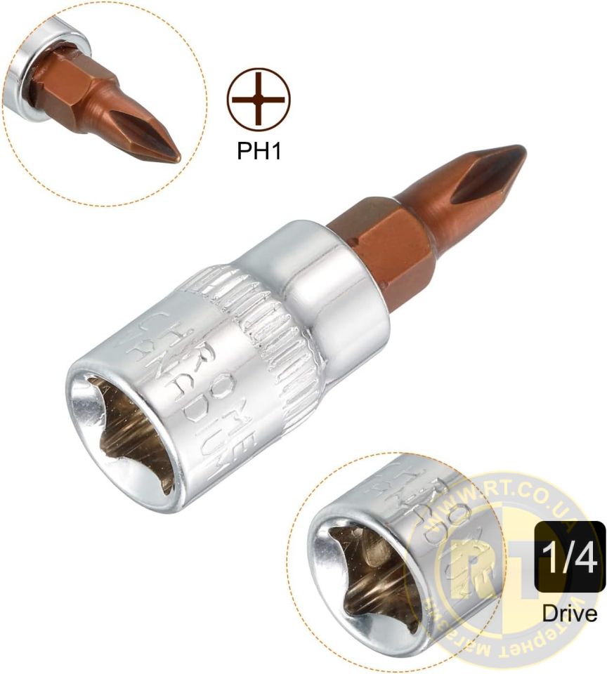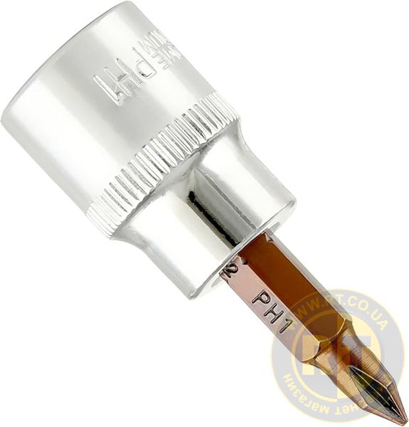 Головка с битой-вставкой PH1 Forsage F-321321 Premium, с присоединительным квадратом 1/4 дюйма, из стали CrV, используется для закручивания и выкручивания крепежных элементов с внутренним профилем PHILLIPS. Предназначена для работы в гараже, центре техобслуживания автомобилей и ремонтной мастерской.