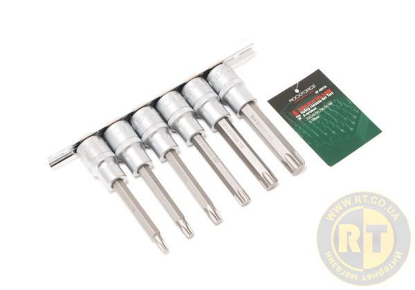 Набор головок-бит Torx 6-лучевых, 6 предметов(Т30,Т40,Т45,Т50,Т55,Т60; L-100мм), на планке ROCKFORCE RF-40913L