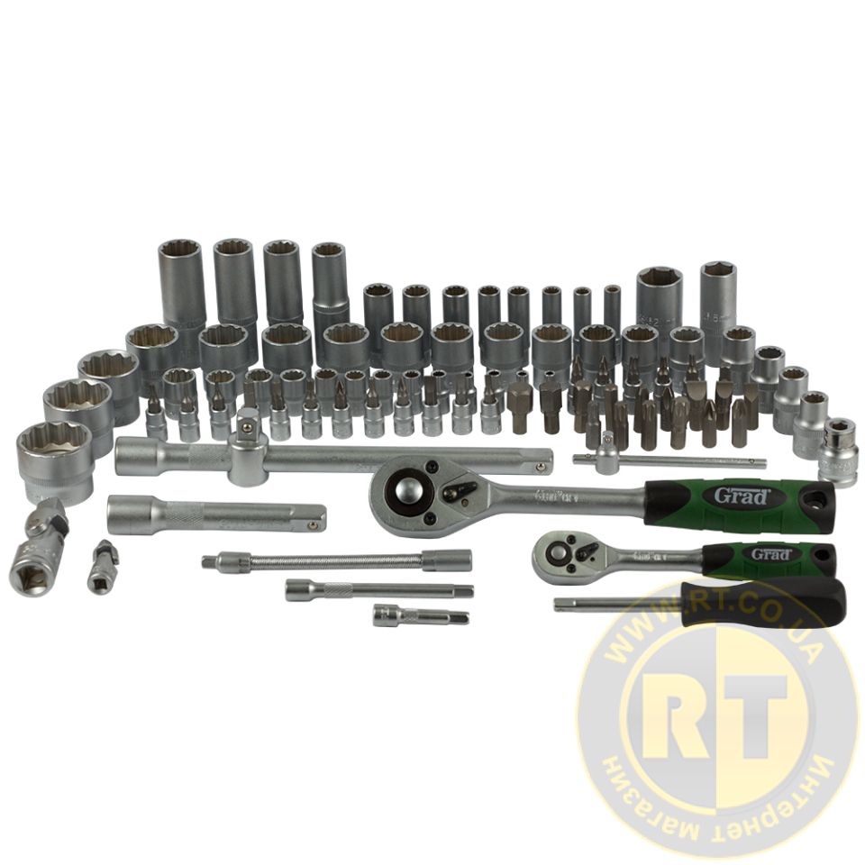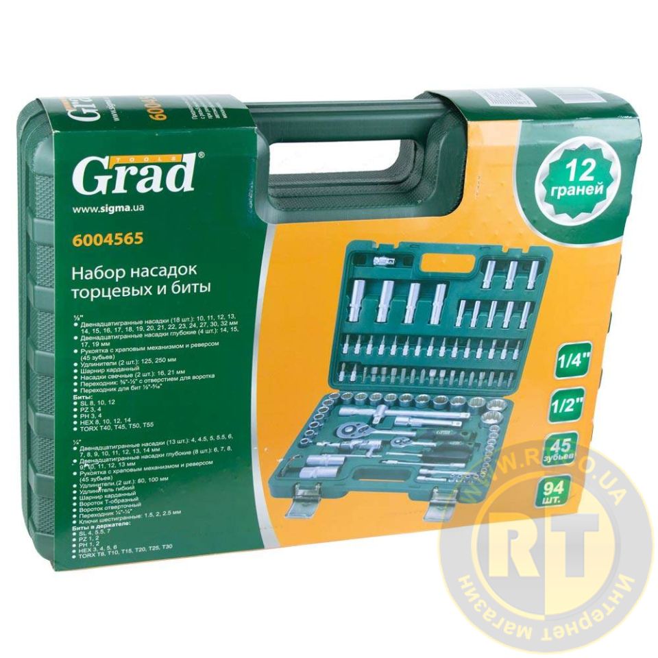 Набор насадок торцевых и биты 1/4", 1/2" 94шт (12 граней) GRAD (6004565)