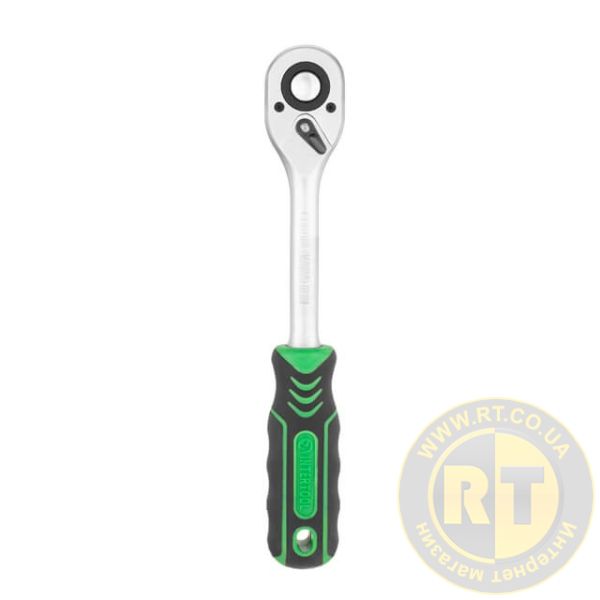 Трещотка изготовлена из Сr-V стали, которая гарантирует исключительную прочность и стойкость к износу. Храповый механизм на 72 зуба обеспечивает плавность хода и возможность работы с крепежами в стесненных пространствах.