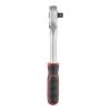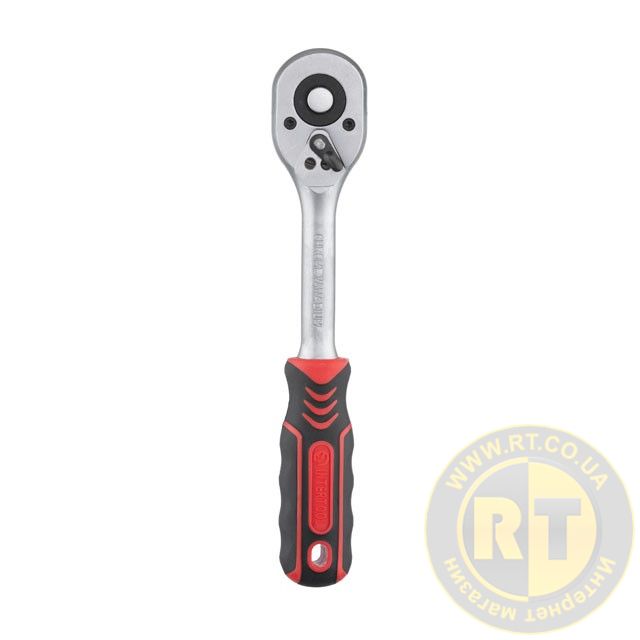Двухкомпонентная рукоятка с резиновыми вставками гарантирует надежное сцепление даже с грязными или испачканными в масле руками. Прочная, удобная трещотка комфортно лежит в ладони во время работы.