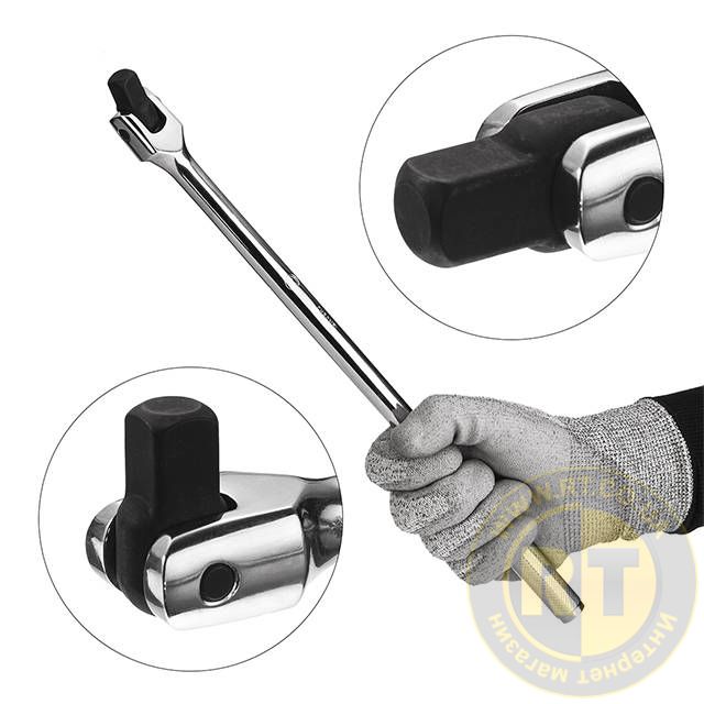 Удобство воротка заключается в том, что квадрат находится на подвижном шарнире. Это позволяет, например, работать с гайками и болтами под определенным углом к ним, если нет возможности установить рукоятку воротка строго перпендикулярно болту или гайке.