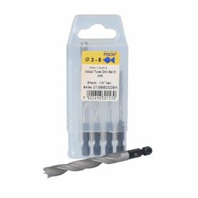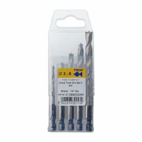 Набір свердл спіральних для дерева 5 sz D= 3-4-5-6-8 мм S= 1/4” шестигранний FISCH F013BE0005K