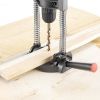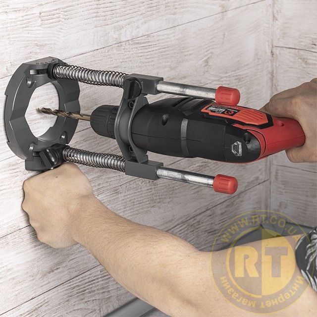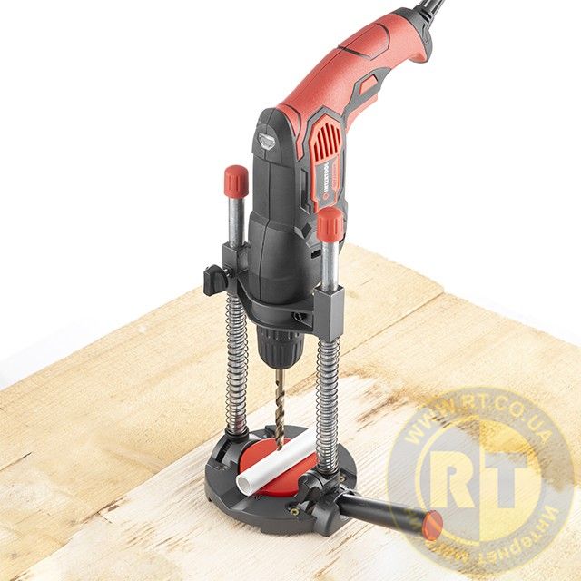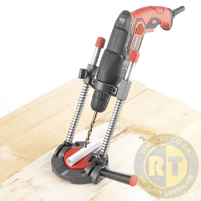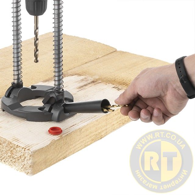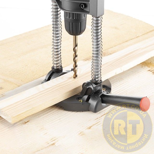 Позволяет стационарно удерживать инструмент для сверления с миллиметровой точностью и выставлением необходимого угла + / - 45ᴼ, с помощью двух винтов на верхней части реек. Также установить рабочую глубину с помощью зажимной ручки, которая ограничивает ход.