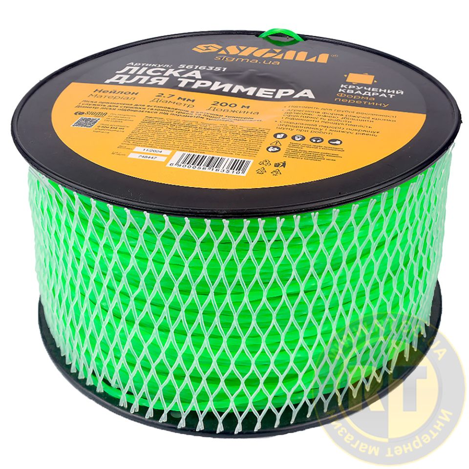 Леска для триммера крученый квадрат Ø2.7мм 200м катушка SIGMA 5616351