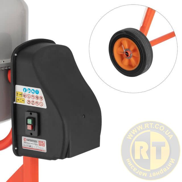 Для удобства эксплуатации и транспортировки бетоносмеситель полностью разбирается и быстро собирается. Нет нужды отводить много места в гараже или сарае для его хранения. Конструкция настолько проста, что даже не самый опытный пользователь разберется с ней в считанные минуты. А для передвижения по рабочей поверхности все бетоносмесители INTERTOOL оснащаются двумя колесами для передвижения и опорной ножкой.