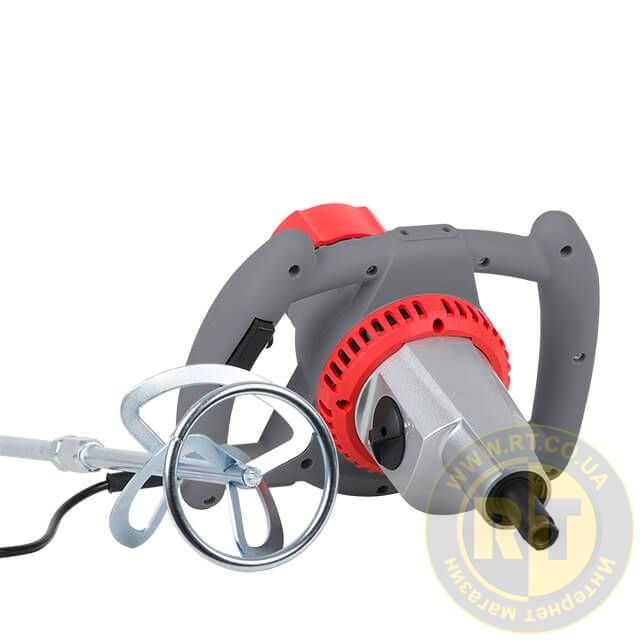 Наличие двухскоростного редуктора позволяет выбрать оптимальный режим работы и замешивать самые разные материалы. Первая скорость с максимальным крутящим моментом отлично подойдет для замешивания густых, тяжелых смесей, таких как цементная штукатурка. Вторая скорость с большим количеством оборотов подойдет для размешивания грунтовок, лаков, красок.