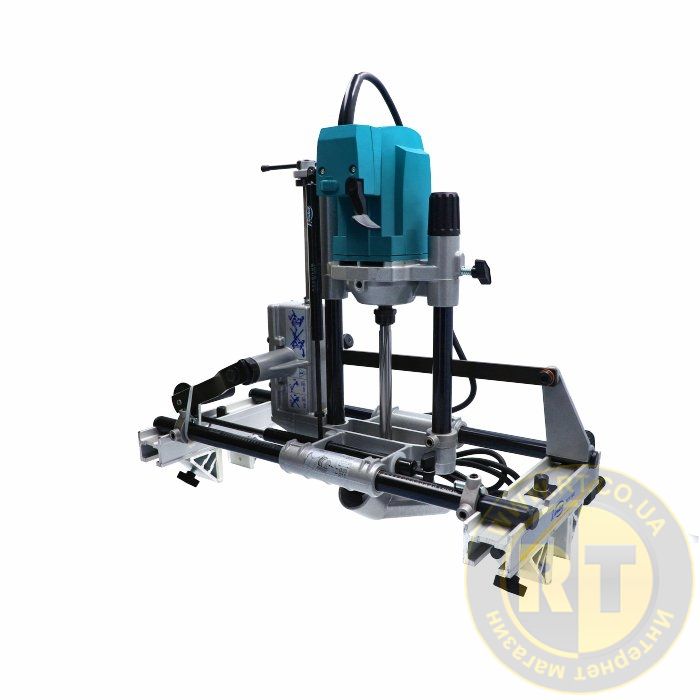 Пристрій, призначений для швидкого вирізання необхідних отворів в дверях або в інших елементах, в майстерні або поза нею. Система кріплення дозволяє працювати на встановлених дверях без ризику пошкодження поверхні. Швидкий спосіб вимірювання дозволяє виконання великого обсягу робіт за дуже короткий час.