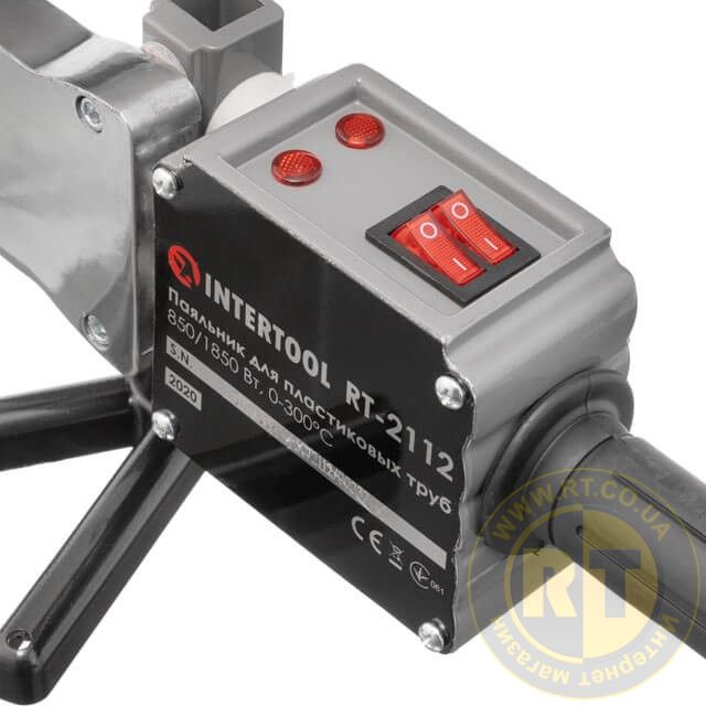 Паяльник для пластиковых труб, 0,85/1,85 кВт, 0-300°C, насадки 20, 25, 32, 40, 50, 63 мм, металлический кейс INTERTOOL RT-2112
