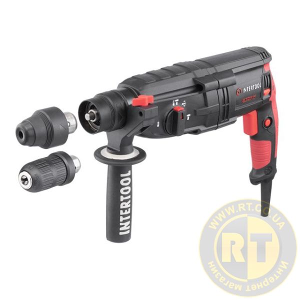 Перфоратор, 1,0 кВт, 3,2 Дж, 0-1300 об/мин, 0-5100 уд/мин, 3 режима, съемный быстрозажимной патрон INTERTOOL WT-0171