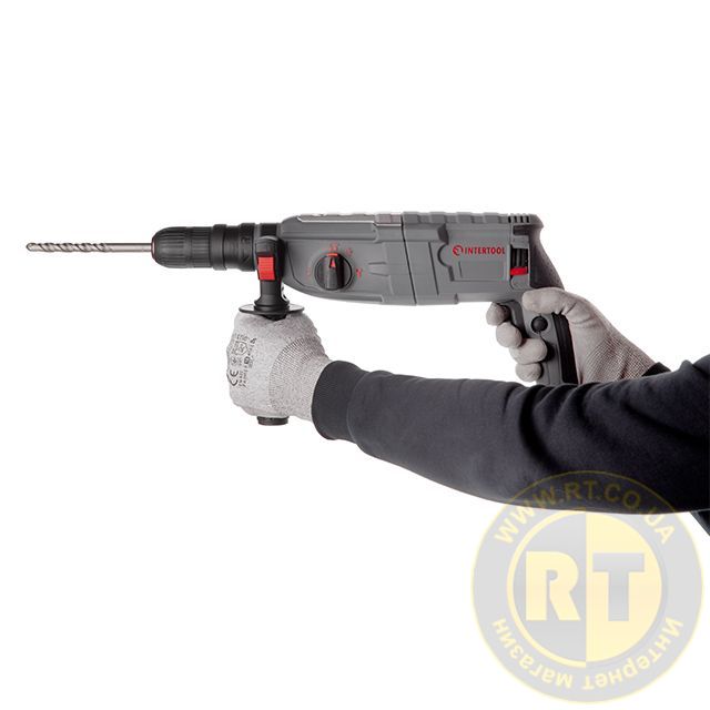 Перфоратор 1,0 кВт, 3,5 Дж, 0-1300 об/мин, 0-5100 уд/мин, 3 режима, SDS-plus, съемный быстрозажимной патрон INTERTOOL DT-0186