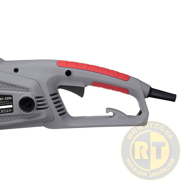 В отличии от бензопилы электропилой можно работать как в помещении, так и на улице, благодаря отсутствию выхлопных газов. Помимо этого электропила DT-2206 малошумная.