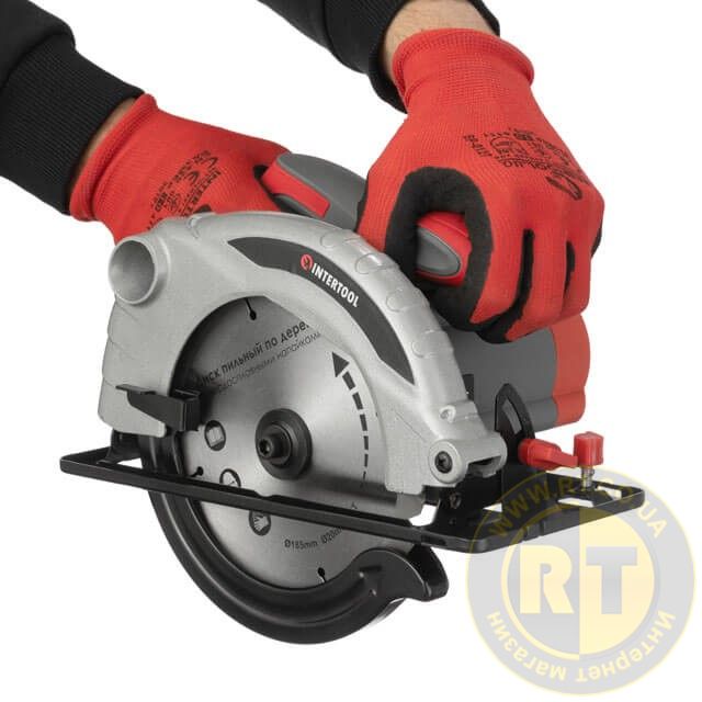Пила дисковая, 1,3 кВт, 5000 об/мин, угол 90-45°, глубина распила 41/57 мм, диск 185×20 мм INTERTOOL DT-0613