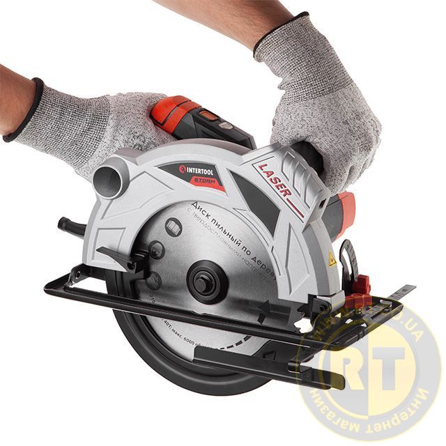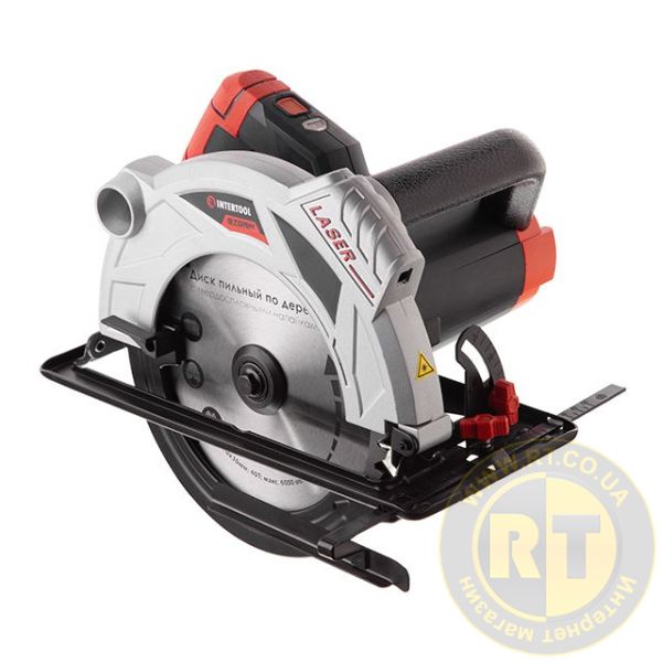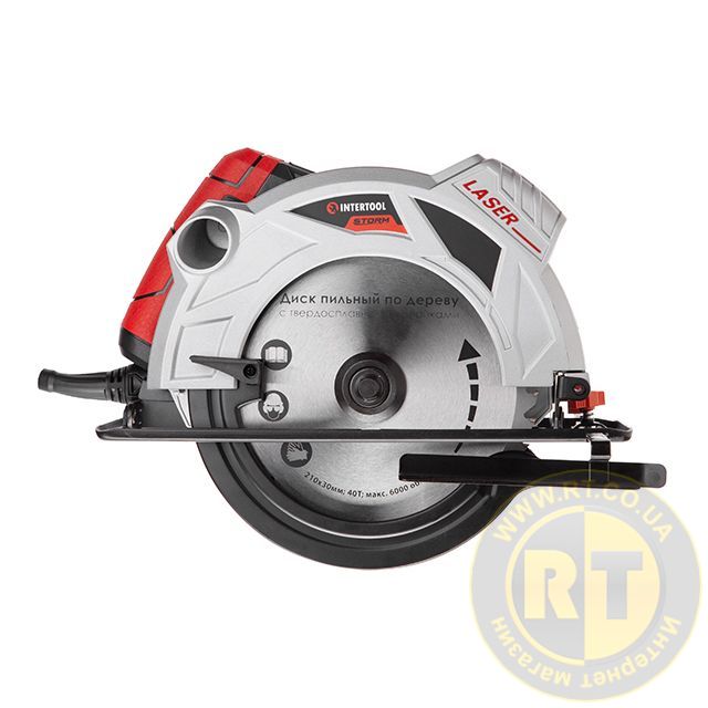 Пила дисковая 1,8 кВт, 5000 об/мин, угол 90°-45°, глубина распила 73-48 мм, диск 210×30 мм, 40 зубов, лазер INTERTOOL WT-0621