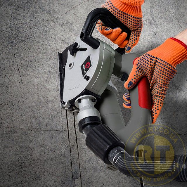 Для удобного использования на корпусе бороздодела размещена дополнительная рукоятка. Во время работы позволяет грамотно перераспределить вес и отлично им управлять. Практически полное отсутствие запыленности на рабочем месте, благодаря возможности подключения строительных пылесосов.