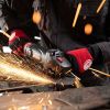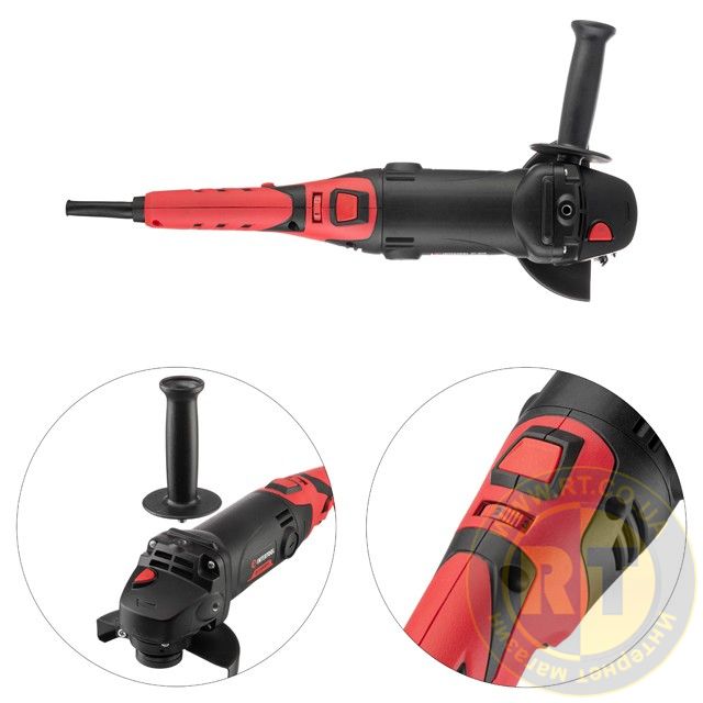 Инструмент удобно лежит в руке и сохраняет обороты даже при больших нагрузках. Прорезиненная кнопка «пуск» имеет удобное расположение и мягкое нажатие. Защита от случайного нажатия делает работу УШМ более безопасной.