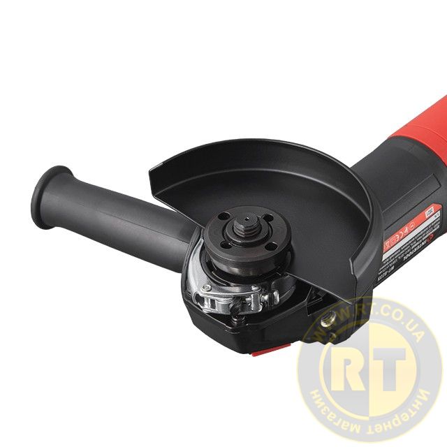 Ответная шестерня конической пары крепится к валу методом горячей прессовки, что обеспечивает отсутствие люфтов при передаче вращения от двигателя на оснастку. Болгарка совместима с дисками диаметром 125 мм и посадочным отверстием 22.2 мм, что позволяет без проблем подобрать к ней оснастку стандартных размеров.