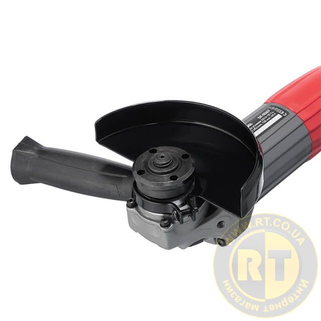 Для защиты оператора от летящих искр, осколков и мусора, над диском установлен защитный кожух. Не стоит забывать, что любой электроинструмент травмоопасен. Во избежание травм, при работе шлифмашиной очень важно соблюдать технику безопасности, а также использовать средства личной защиты!