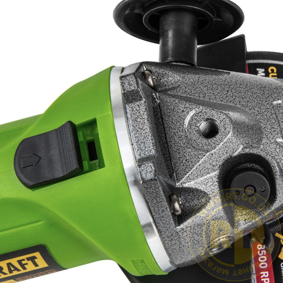 Машина имеет защитный кожух, защищающий ее от механических повреждений, и обеспечивающий безопасность оператора. Дополнительным преимуществом инструмента является быстрая замена угольных щеток, с помощью пары внешних щеткодержателей и длина сетевого кабеля. За счет мощного двигателя и продуманной конструкции, возможно плавно настраивать обороты до максимальной скорости 11000 об/мин.