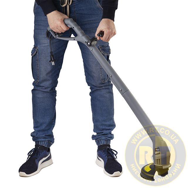 Сравнительно небольшая мощность триммера в 250 Вт развивает высокие обороты до 12 000 об/мин, что обеспечивает отличную производительность и эффективный покос мелкого сорняка и газонной травы. Двигатель расположен в нижней части штанги, поэтом важно работу проводить в сухую погоду и без наличия росы. Такое расположение также обуславливает небольшой вес агрегата и дополнительное удобство в работе. Ширина покоса составляет 220 мм, используется катушка с леской, диаметром 1 мм.