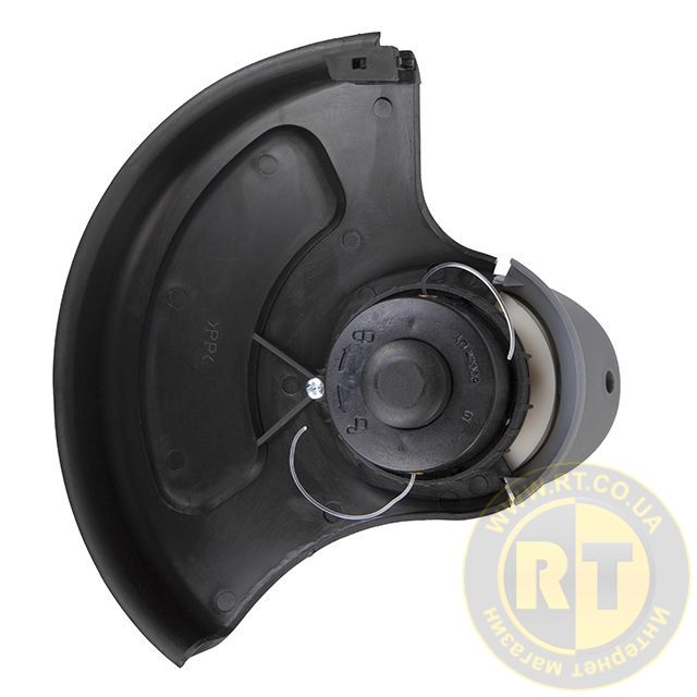 Кожух триммера изготовлен из ударопрочного пластика и защищает пользователя от выброса травы, надежно закрывая режущую леску с катушкой.