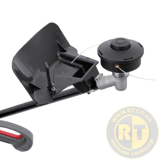 Защитный кожух из ударопрочного пластика закрывает режущее оборудование, таким образом ограждает пользователя от выброса травы и прочих предметов.