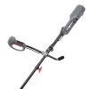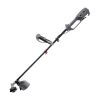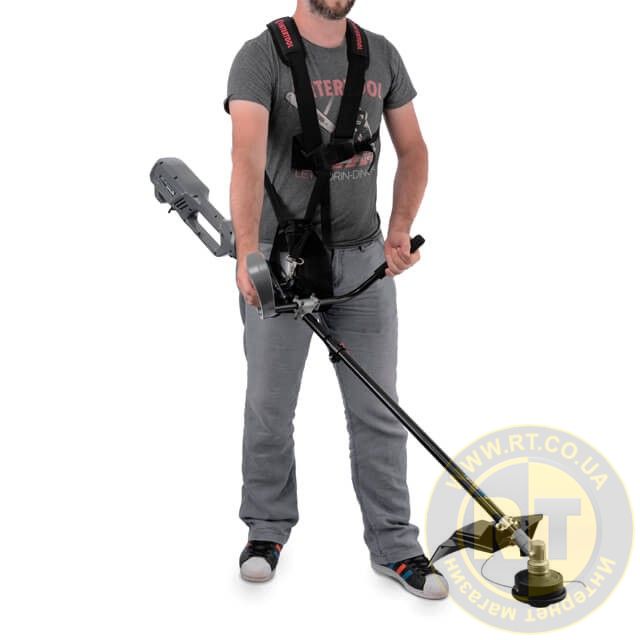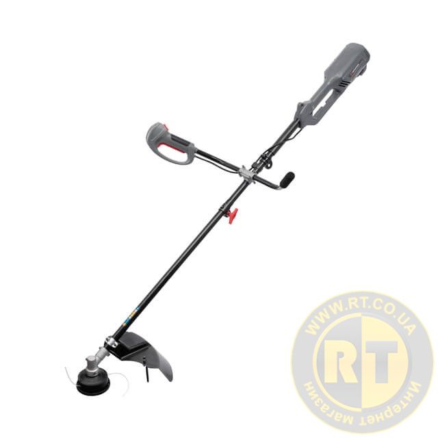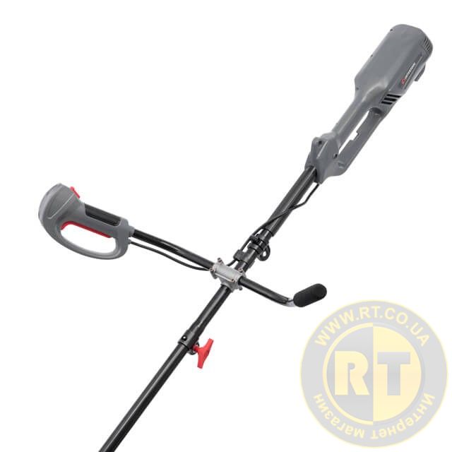 Двигатель расположен в верхней части штанги, поэтому пыль и влага не попадает внутрь, это позволяет работать с сухой и мокрой травой в любое время суток. Штанга в триммере разборная, поэтому во время транспортировки и хранения инструмент не займет много места.