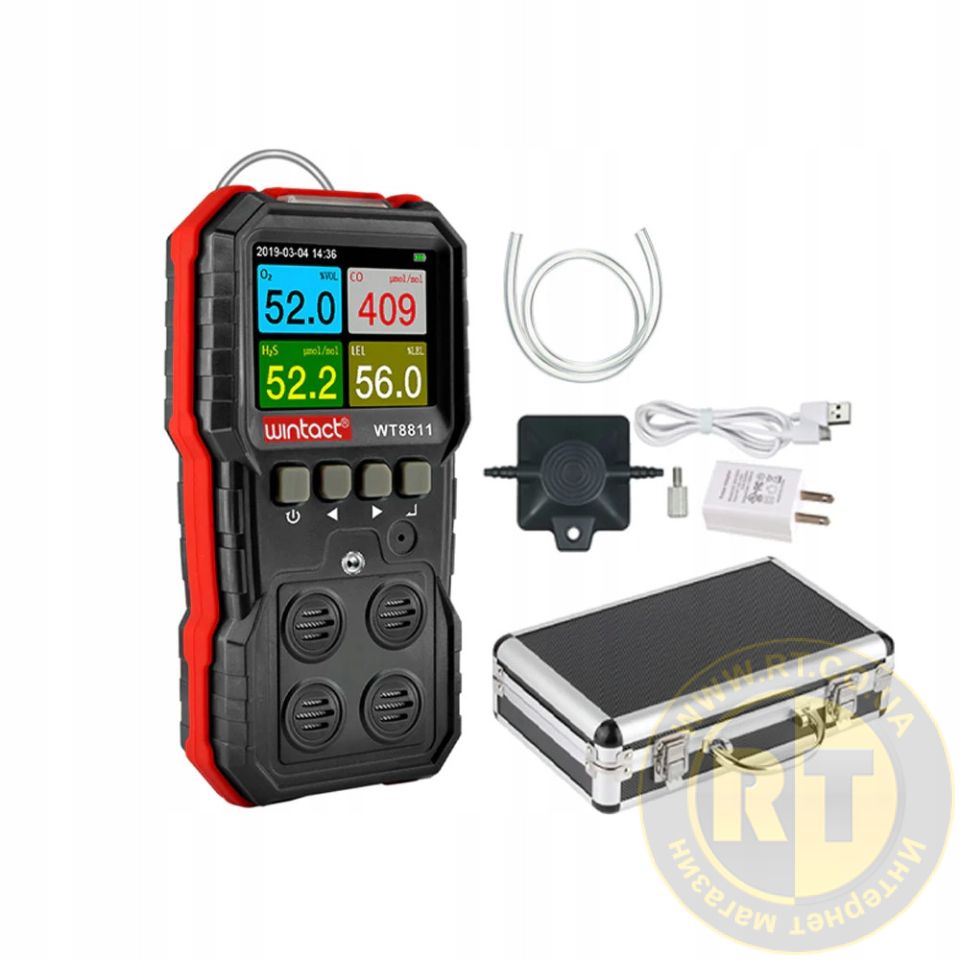 Измеритель концентрации газов 4-в-1 (кислород (O2), монооксид углерода (CO), сероводород (H2S), горючий газ (LEL) WINTACT WT8811