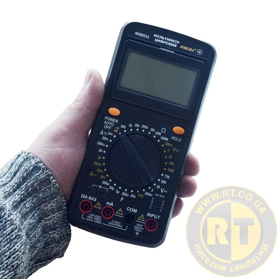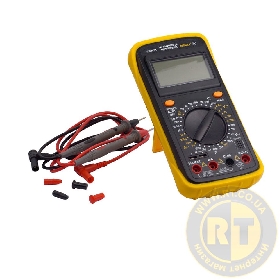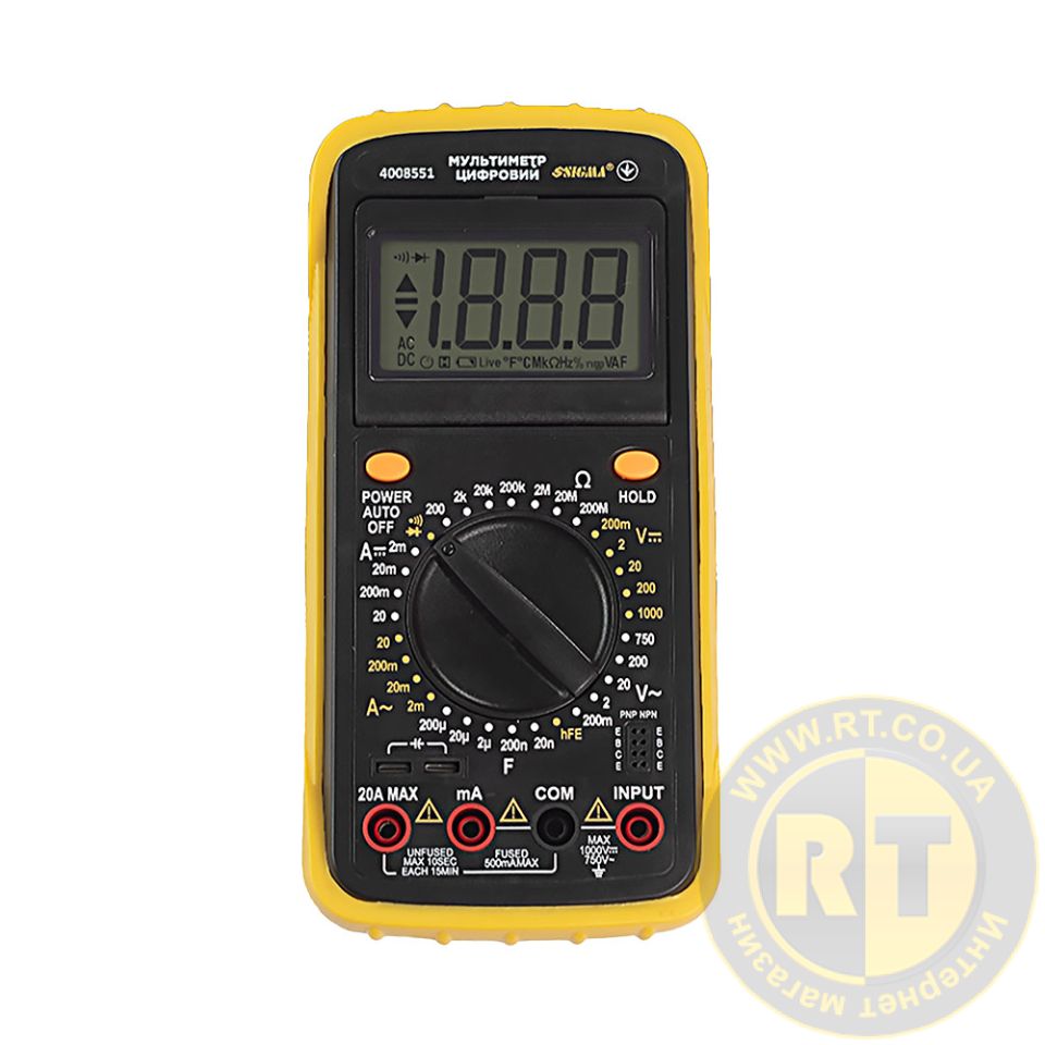 Мультиметр цифровой профи SIGMA (4008551) с ЖК дисплеем, имеющий разрешение 3 1/2" разряда, который предназначен для измерения постоянного и переменного напряжения, постоянного и переменного тока, сопротивления, тестирования транзисторов, а также прозвона цепи на обрыв.