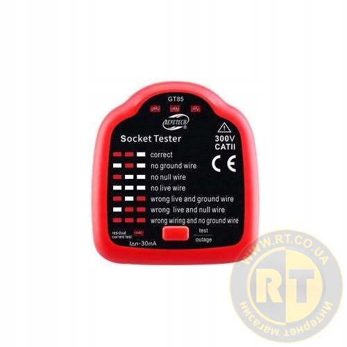 Тестер розеток с функцией проверки УЗО BENETECH GT85