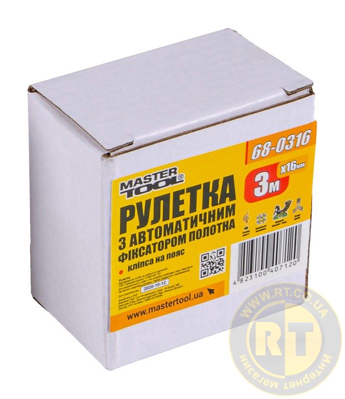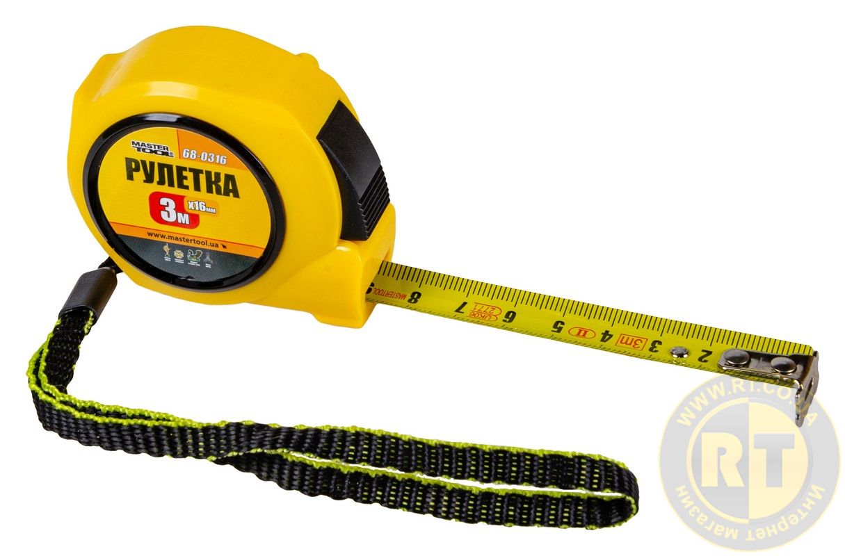 Рулетка 3 м×16 мм автоматический фиксатор полотна MASTERTOOL 68-0316