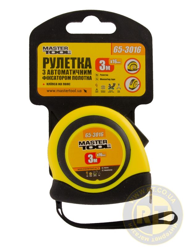 Рулетка 3 м×16 мм автоматический фиксатор полотна покрытие TPR MASTERTOOL 65-3016