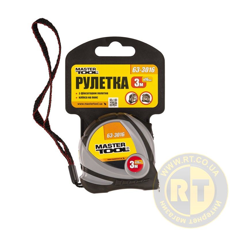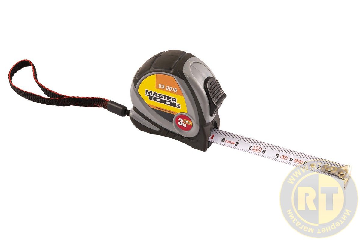 Рулетка 3 м×16 мм фиксатор полотна покрытие TPR MASTERTOOL 63-3016