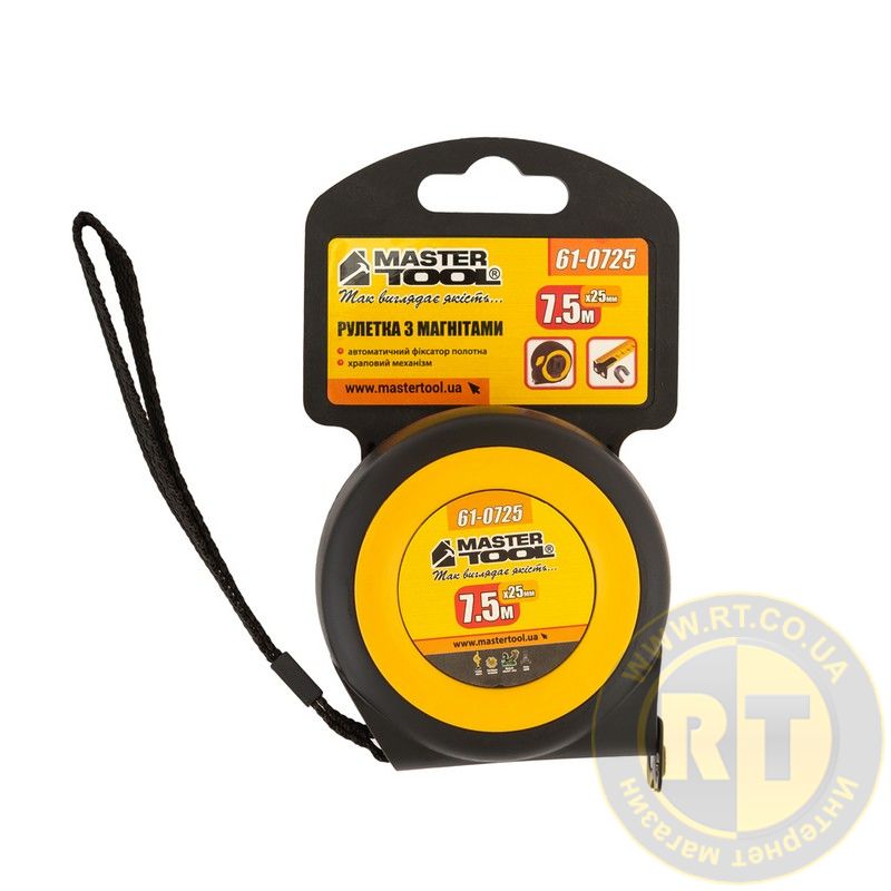 Рулетка 7.5 м×25 мм с магнитами автоматический фиксатор покрытие TPR храповый механизм MASTERTOOL 61-0725