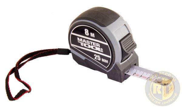 Рулетка 8 м×25 мм фиксатор полотна кнопка STOP нейлоновое покрытие металлическая накладка MASTERTOOL 60-8025