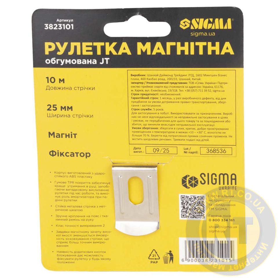 Рулетка магнитная фиксатор + тормоз 10м×25мм SIGMA 3823101