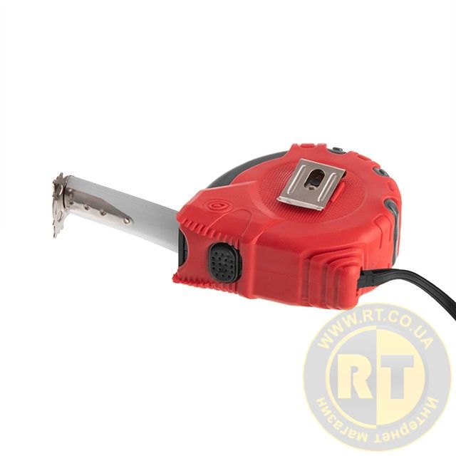 В рулетке установлен мощный магнитный зацеп с двумя магнитами. Металлический зацеп на пояс, резиновые ремешки для удобства в работе.