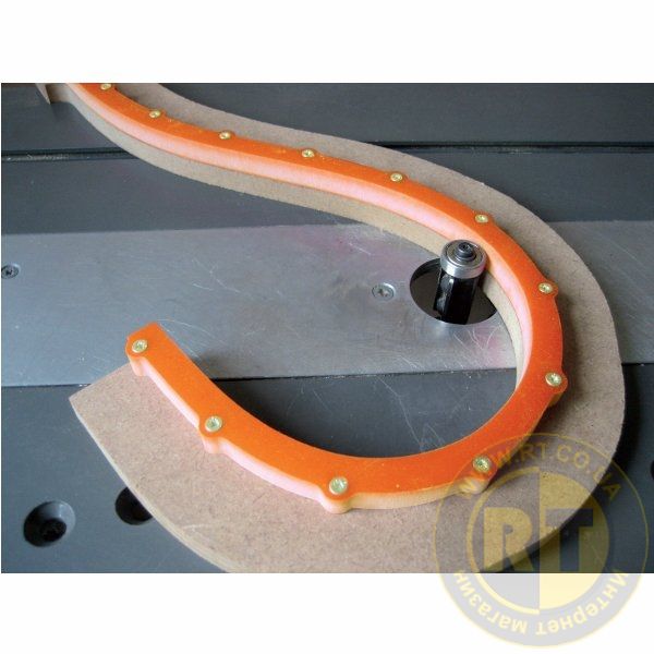 Гнучкий шаблон є надзвичайно практичним інструментом для швидкого виготовлення криволінійних елементів з MДФ або ДСП. Щоб його закріпити, достатньо лише кількох гвинтів 4x30 або 3x20 (залежно від типу шаблону). Виготовлений зі спеціального пластику, що забезпечує його міцність та пластичність навіть після частого згинання. Перевагами даного виробу є тривалий термін використання, легкість і простота встановлення, заощадження часу та витрат. Закріпіть шаблон на краю панелі, дотримуючись наміченої лінії фрезерування та враховуючи тип фрезерного інструмента, підшипника або копіювального кільця. Шаблони підходять для фрезерування ручними фрезерами, а також на верстатах з механічною подачею. Увага! При використанні фрезерних столів та верстатів будьте особливо обережні, тримайте руки за шаблоном для збереження безпечної відстані від робочого інструменту. Наш шаблон забезпечить легку, швидку та комфортну роботу.