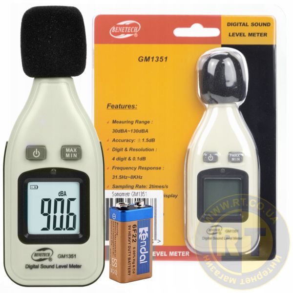Шумомер GM1351 отличается широким диапазоном от 30 до 130 дБ и точностью 0,1дБ. Благодаря частоте измерения 2 раза в секунду и возможности фиксации максимального показания вы сможете проводить замеры газодинамических шумов. Модель GM1351 оснащена датчиком света для автоматического включения подсветки дисплея в условиях недостаточной освещенности и функцией авто-отключения. Особенности GM1351:1. Частота измерения 2 раза/сек.2. Автоматическая подсветка дисплея3. Фиксация на дисплее последнего максимального значения4. Индикатор заряда батареи5. Режим энергосбережения (авто-отключение 11 мин.)6. Крепление с резьбой для стационарного размещения шумомера