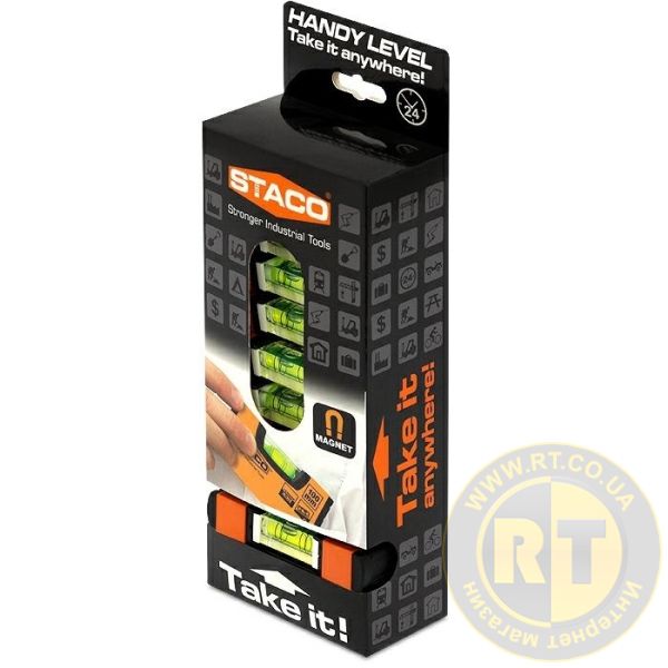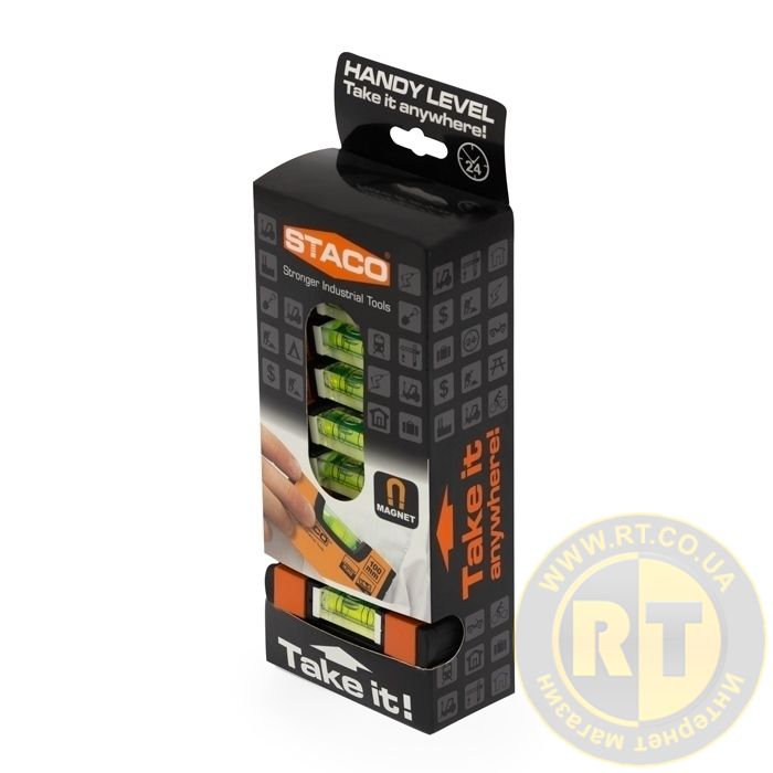 _НВ_32021. МІНІ рівень ручний, м. магніт, 100 мм, 1 флакон, точність 0,5 мм / м., 10 шт. STACO 32021.STACO