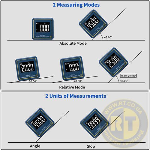 Два режима измерения: имеет два режима измерения – абсолютный угол и относительный угол, позволяющий легко оперировать им в любых условиях.