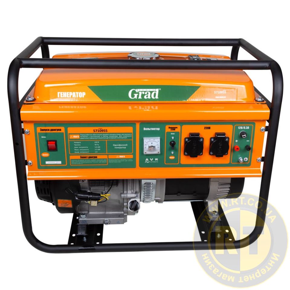 Генератор бензиновый 230В 5.0/5.5кВт 4-х тактный ручной запуск GRAD (5710955)