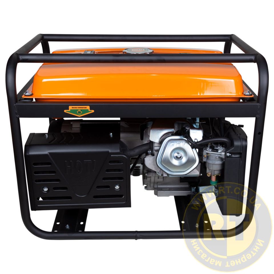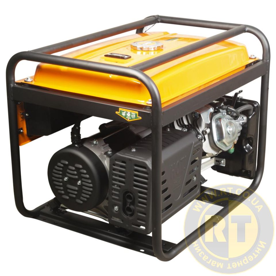 Сердцем генератора является бензиновый четырехтактный двигатель внутреннего сгорания. В зависимости от типа и вида оборудования, подключаемого при полной заправке генератор может проработать около 12 часов. Двигатель генератора запускается с помощью ручной системы запуска - пускового устройства со шнуром.