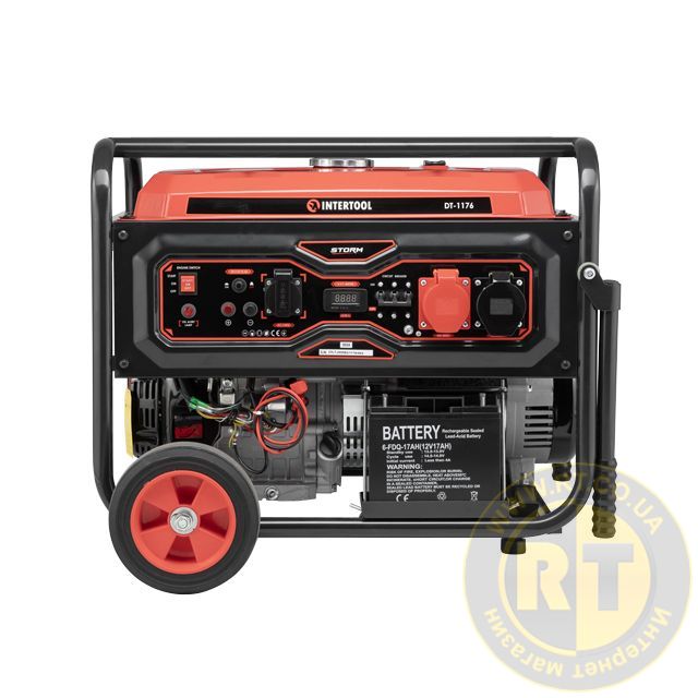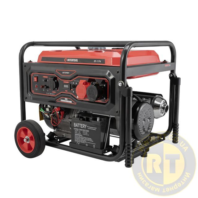 Генератор бензиновый 7,0/7,5 кВт, 380/220 В, 25 л, электро/ручной старт, медная обмотка, STORM INTERTOOL DT-1176
