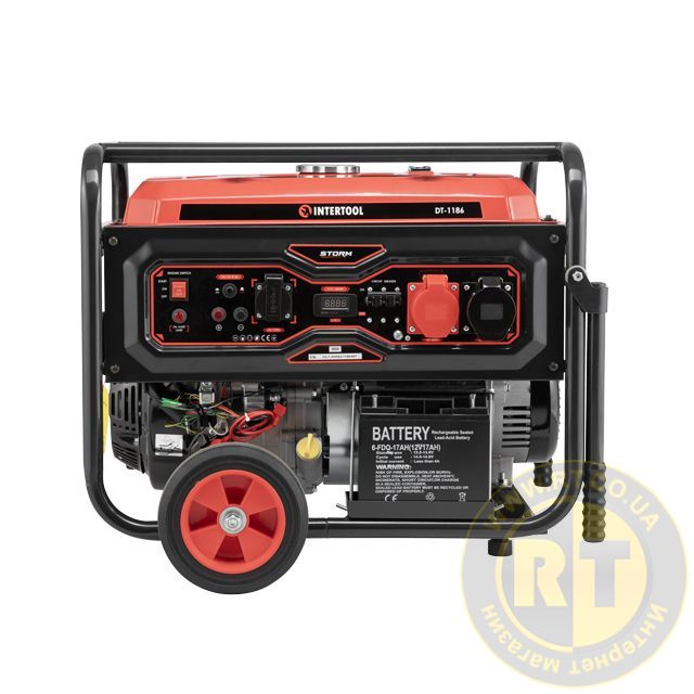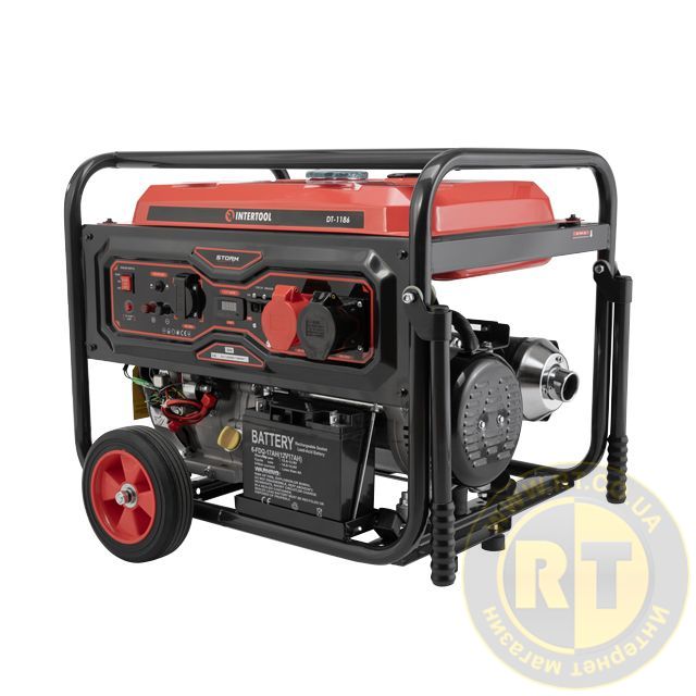 Генератор бензиновый 8,0/8,5 кВт, 380/220 В, 25 л, электро/ручной старт, медная обмотка, STORM INTERTOOL DT-1186