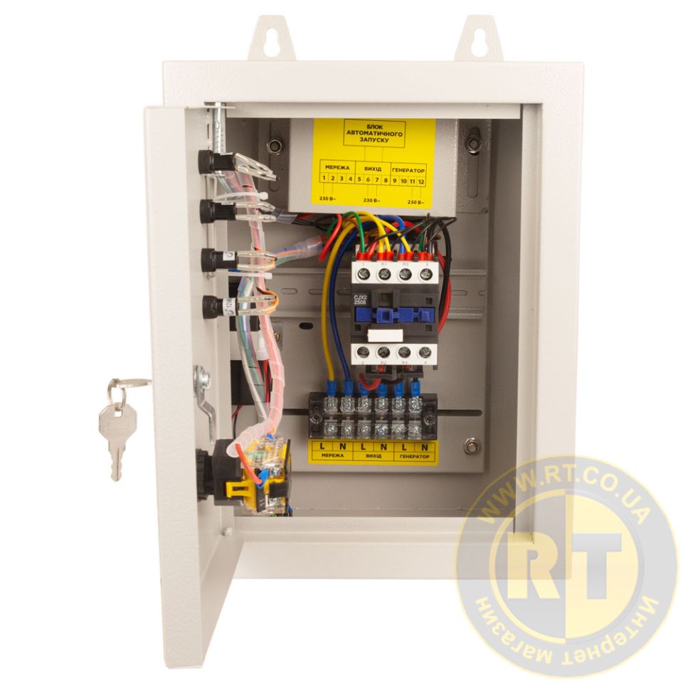 Блок обеспечивает автоматический запуск генератора в случае сбоя или прекращения подачи электроэнергии в общей сети, переключение нагрузки на питание от генератора, а также обратное переключение нагрузки на общую сеть при восстановлении и остановке генератора.