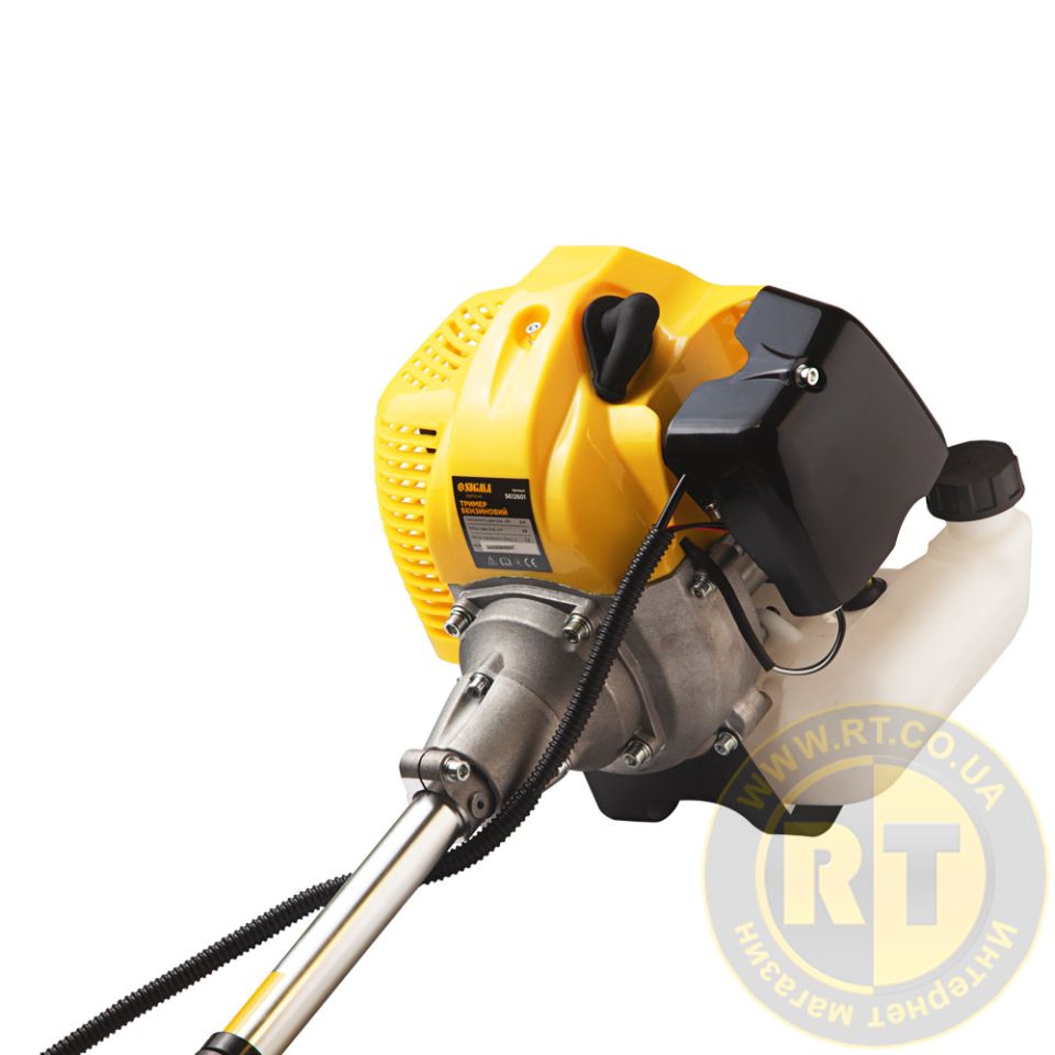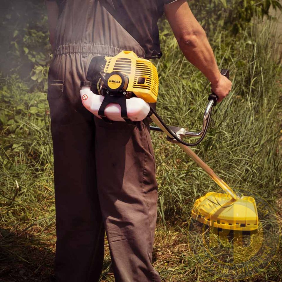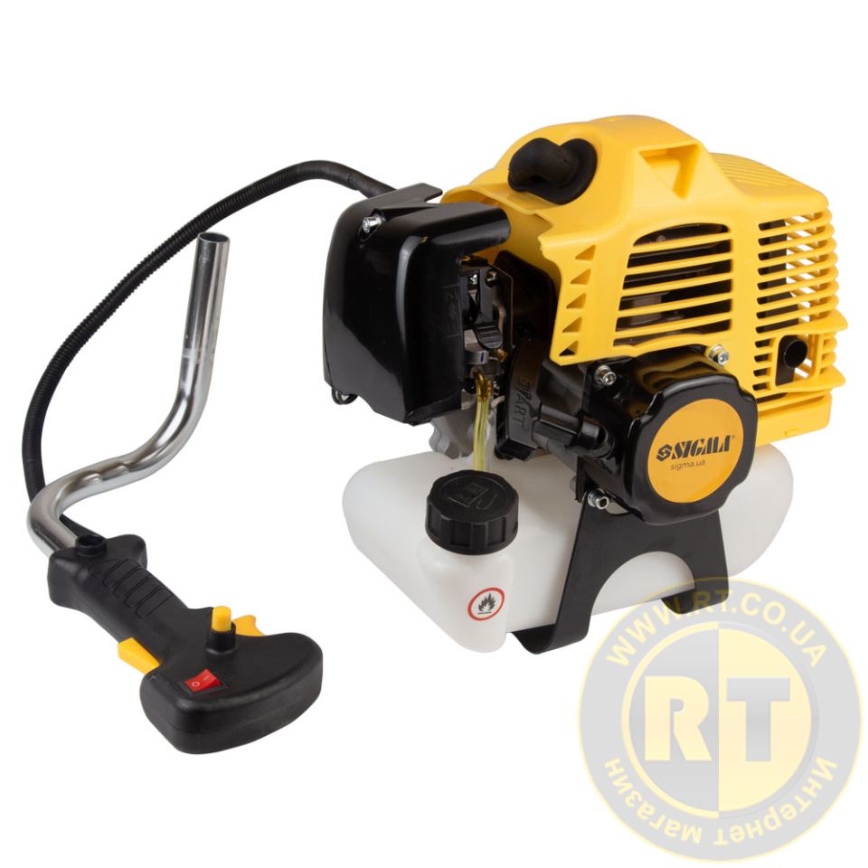 Бензиновый триммер Sigma представляет собой ручное моторизированное изделие с верхним расположением двигателя внутреннего сгорания. Принцип действия изделия очень прост: вращательное движение от двигателя внутреннего сгорания передается на вал. Конический редуктор осуществляет механическую передачу крутящего момента от вала на шпиндель, на котором закреплен нож или катушка с леской